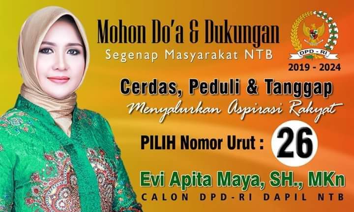 LombokFokus.com – Calon Dewan Perwakilan Daerah (DPD) RI Dapil NTB, Evi Apita Maya berpotensi besar melenggang maju menuju Senayan. Itu berdasarkan tabulasi suara yang berhasil menyaingi Caleg lainnya. Bahkan, empat incumbent tidak berdaya olehnya.