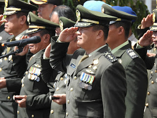 Lombok Tengah – Kepala Staf Korem 162/WB Letnan Kolonel Inf Endarwan Yansori bertindak sebagai inspektur upacara penerimaan jenazah Alm. Pratu Sirwandi M. Zahidillah di Bandara Lombok International Airport Lombok Tengah, Senin (19/8).