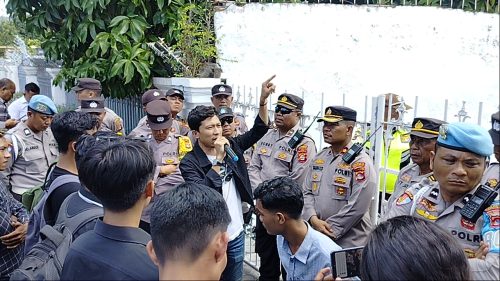“Biarkan kami masuk memastikan management kantor di dalam, kenapa tidak satu pun mereka di kantor di hari kerja ini, apakah mereka takut didemo atau mereka sengaja hilang,” teriak salah satu massa aksi.